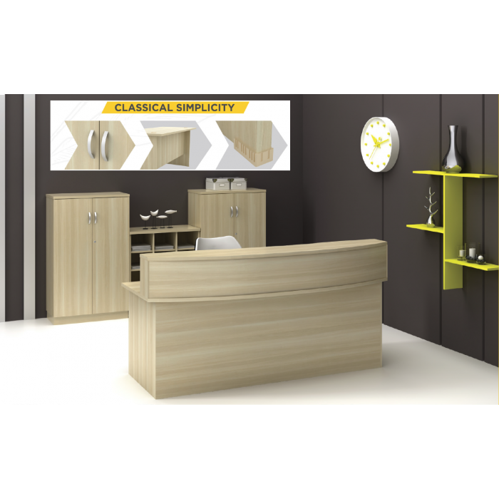 The B Series – Bow Front Reception Counter is available in two sizes: