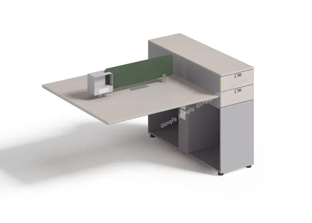 Smart Connectivity: Low divider with built-in power points and USB ports for clutter-free cable management.