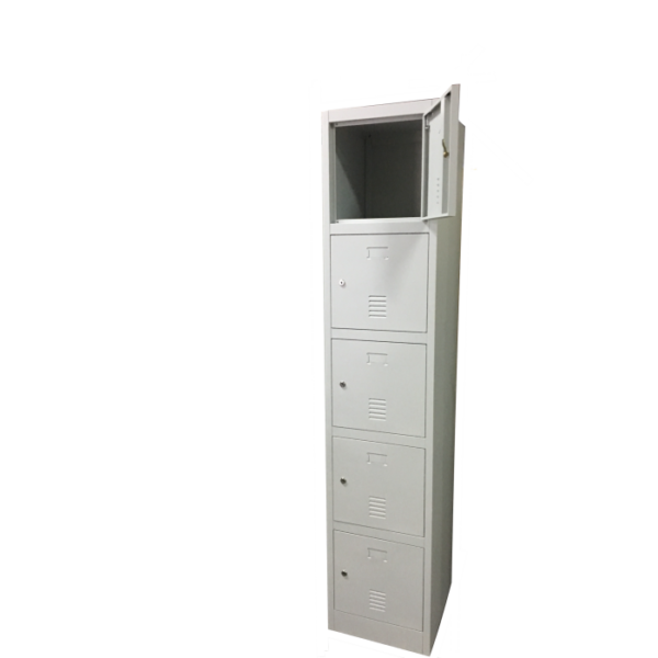 The modern light grey finish blends effortlessly into any environment, while individual locks and keys ensure the security of your belongings. Inside, four adjustable shelves offer customised storage solutions for items of varying sizes.