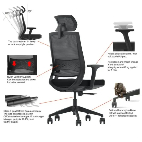 Backrest: High density mesh backrest provides breathability and comfort.